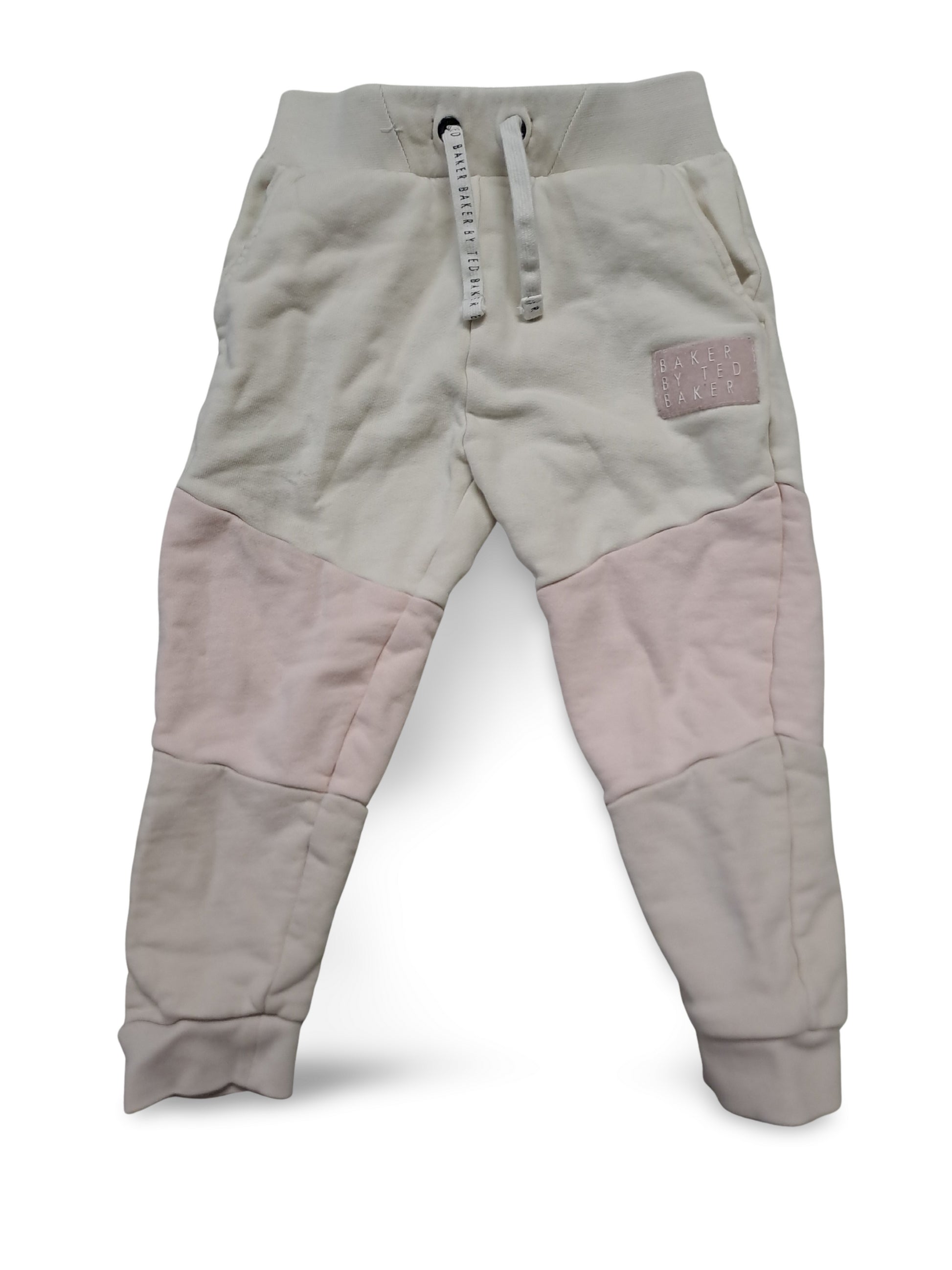 Gemütliche Jogginghose in Creme mit zarten Rosa-Elementen im modernen Farbblock-Design. Der elastische Bund mit Kordel, praktische Seitentaschen und schmale Bündchen an den Knöcheln sorgen für Komfort und Bewegungsfreiheit. Ideal für entspannte Alltagslooks.