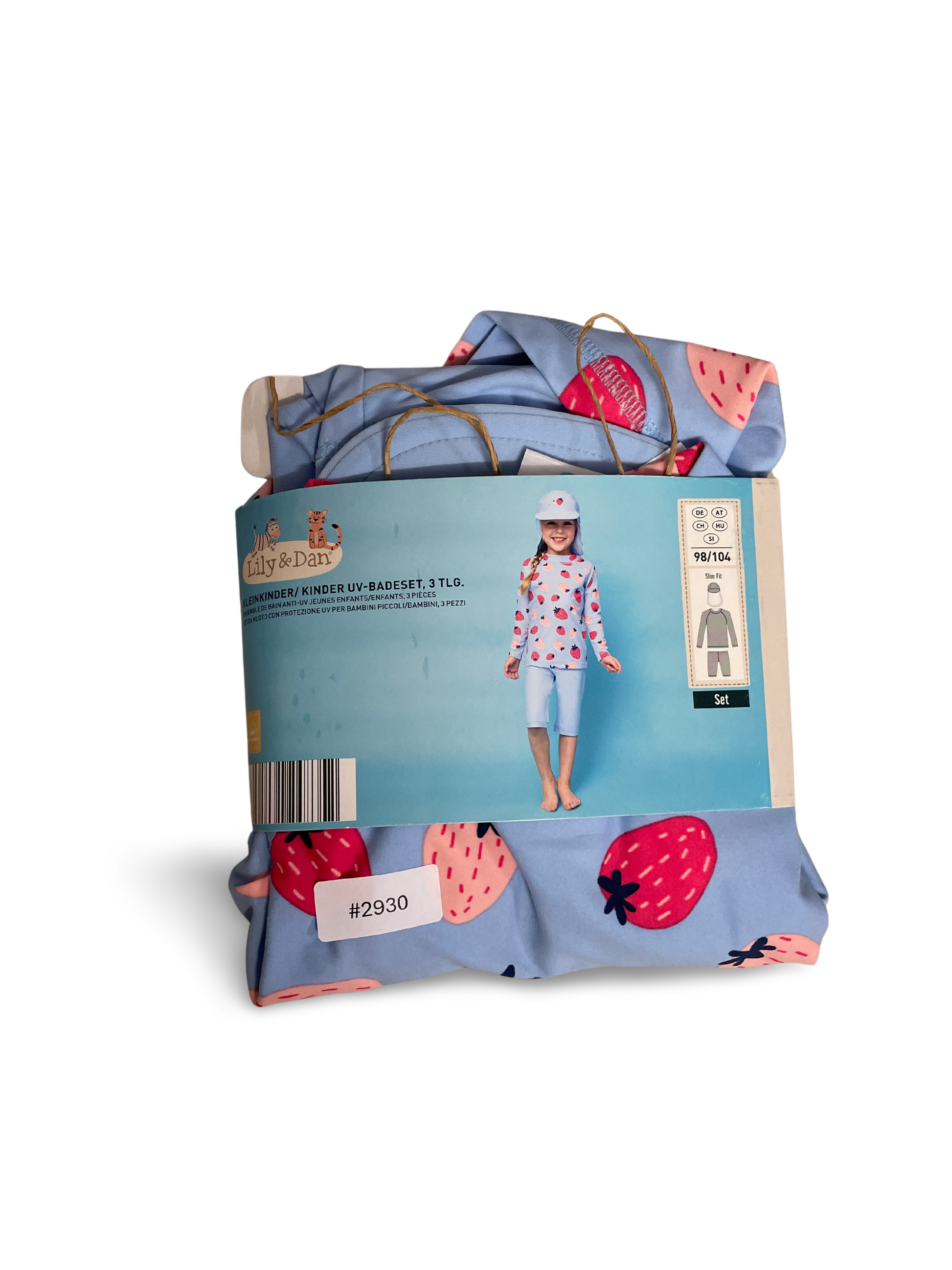 Ein fröhliches UV-Badeset in Hellblau mit süssen Erdbeer-Prints. Weicher, angenehmer Stoff, ideal für sonnige Tage am Strand oder im Freibad. Bequeme Passform und liebevolle Details machen es zum Lieblingsstück im Sommer.