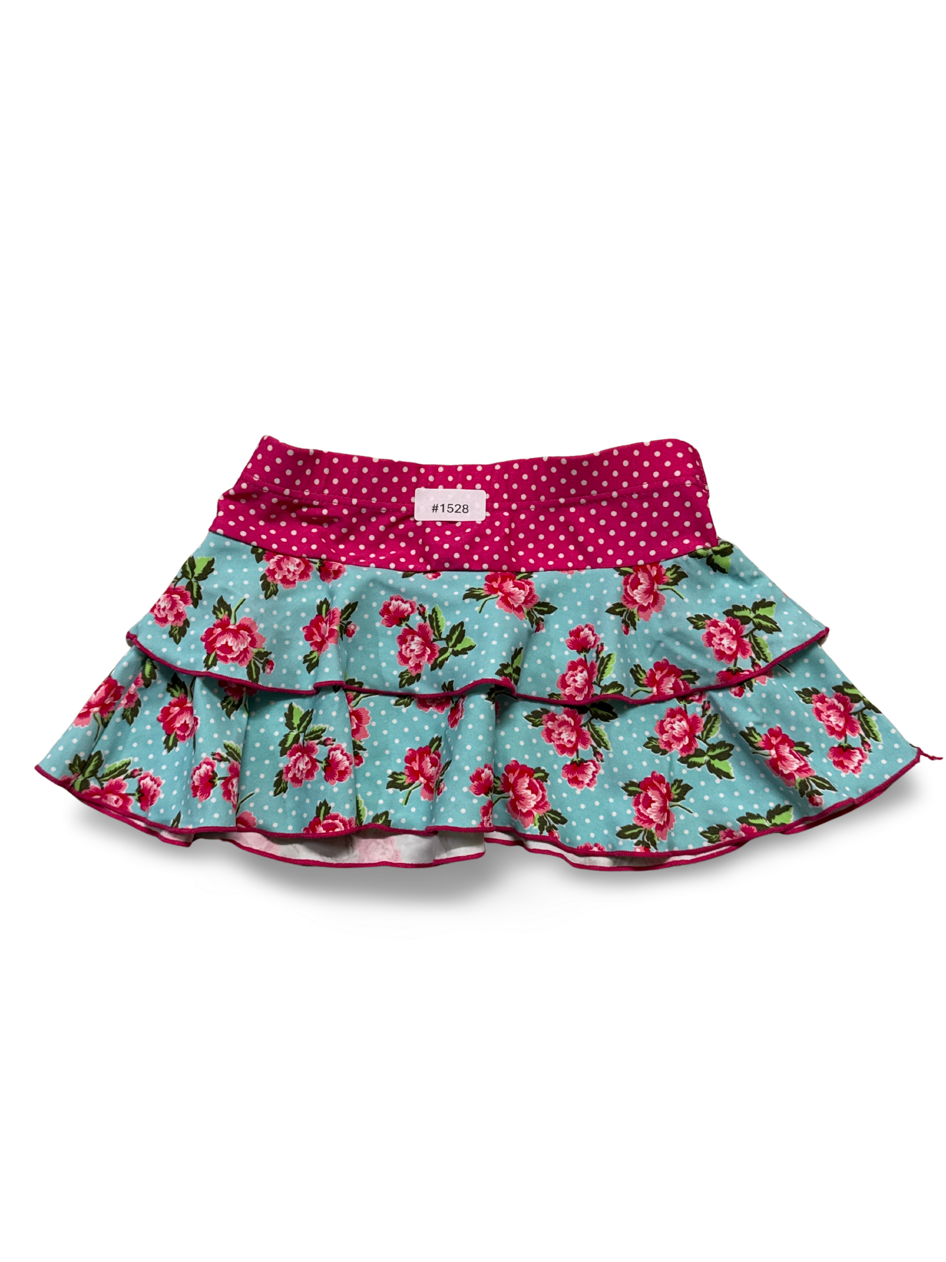 Rüschenrock mit buntem Blumen- und Tupfenmuster, mehrlagig und mit elastischem Bund