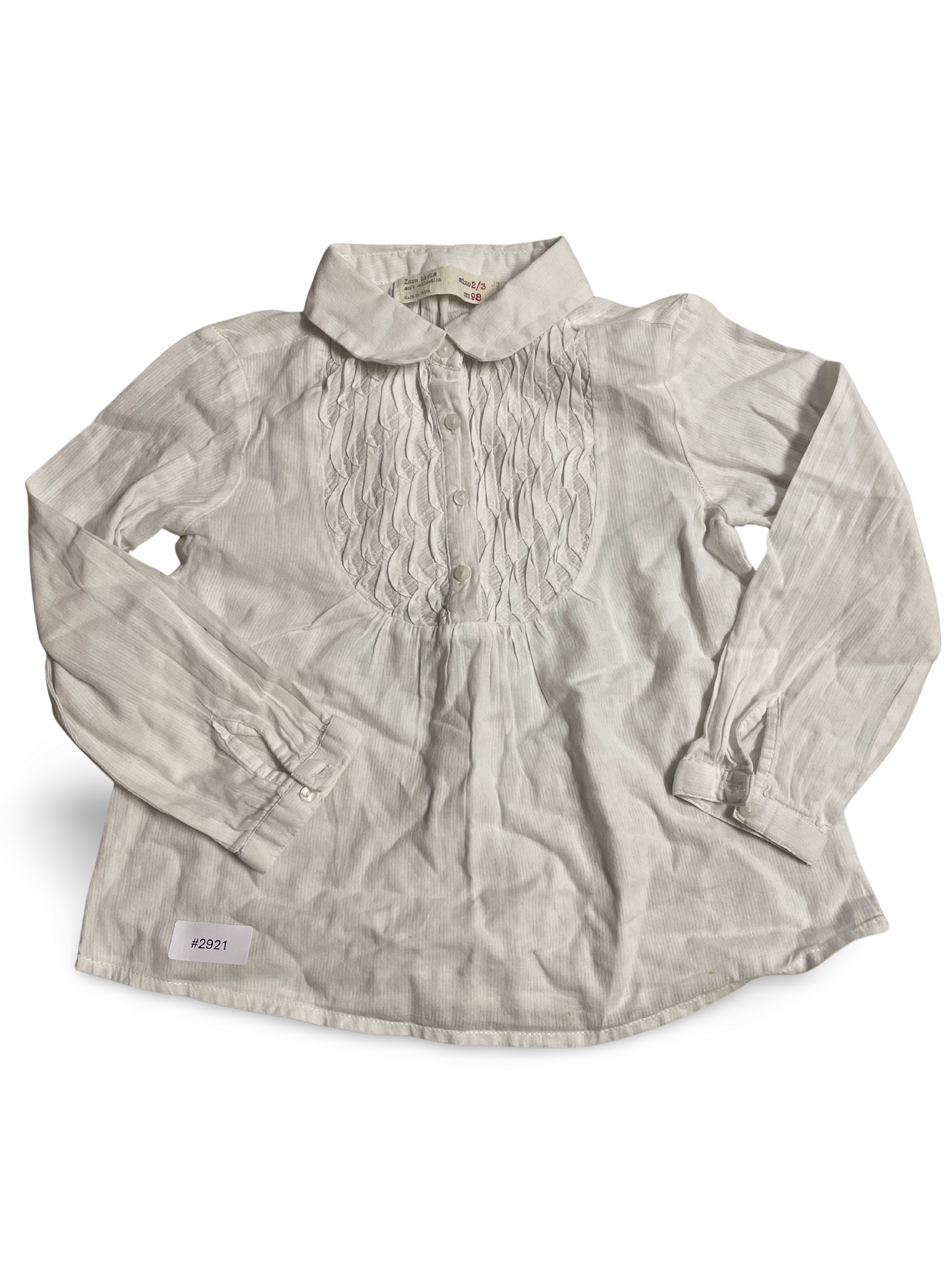 Weiße Langarmbluse mit Bubikragen - Gr. 98