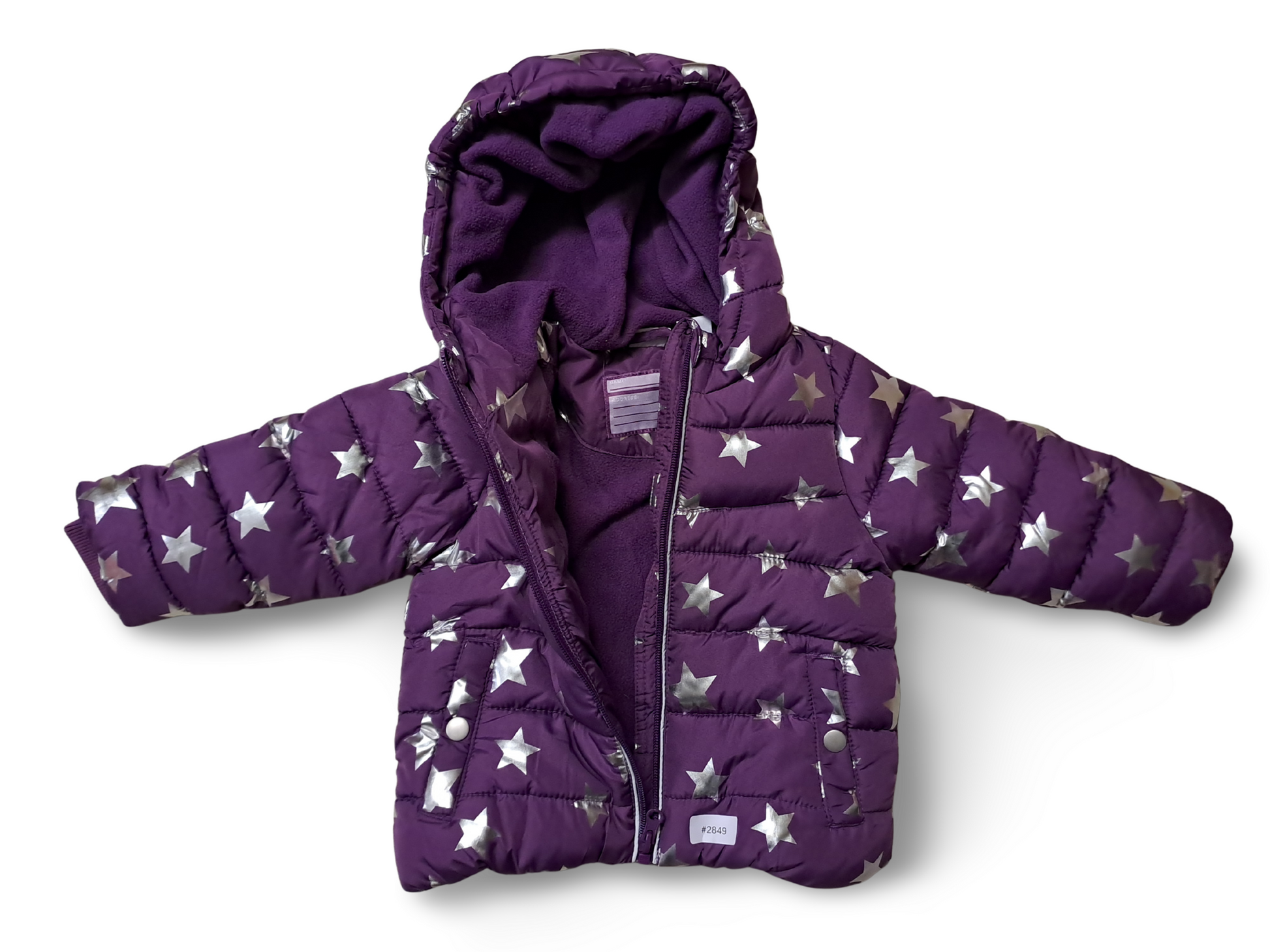 Winterjacke lila mit silbernen Sternen - Gr. 86